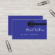 Une carte de couleur bleue professionnelle avec des informations de base... votre nom (style de police de script blanc) avec occupation musicale personnalisée (enseignant) et l'image d'un cou de guitare graphique... et adresse, email et téléphone à l'arrière...