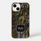Personalisieren Sie Ihre individuelle Eingabe und Ihren eigenen Namen. Coole braune, mossy Holzrinde mit Coolem, gelblichen Foto von PLdesign: Gelbe Crustose Flechten, die auf Rinde wachsen. Persönliche Geschenkidee für Jäger und Naturliebhaber.