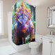 Dieser Duschvorhang hat einen coolen Dinosaurier, der darauf abgebildet ist.