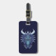Coole Drachenfantasy-Gepäckmarke mit einer originalen Kunstdarstellung eines blauen Drachenkopfes mit großen Hörnern.
