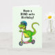 Machen Sie ihren Geburtstag mit dieser lustigen und sonderbaren Karte mit einem super coolen Dinosaurier Kreuzfahrt auf einem Roller. Mit Schattierungen auf den Rädern drehen und Geburtstagsvibes in vollem Schwung, diese Dino weiß, wie man stilvoll Party. Diese Karte ist perfekt für Kinder und Dinoliebhaber jeden Alters geeignet und bringt Lächeln und eine Touch von prähistorischem coole zu jeder Feier.