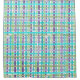 Dieser Duschvorhang ist im Art-Déco-Stil gehalten und besteht aus zwei türkisfarbenen, zwei lila und zwei Grüntönen.