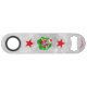 Cet ouvre-bouteille est blanc avec un motif de divers cercles et un squelette cool tenant des ornements jusqu'aux yeux dans un chapeau de Père Noël à l'intérieur d'un cercle vert et rouge ondulé avec une étoile rouge au-dessus et au-dessous de lui. Customisez votre nom ou votre texte avec le modèle.