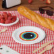 Trippige, coole Cartoon-Teller mit Regenbogenoptik für lustige Themenabende, Halloween oder ein abwechslungsreiches Picknick mit Ihrem Lieblingskraut. Doppelt als böses Auge in Regenbogenfarben. Bearbeiten, um den weißen Hintergrund zu einer beliebigen Farbe zu ändern. ♡ Idyllfire