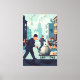 Cool Sir Winston Churchill poster, as you've never seen Churchill before. Firstly, Sir Winston is styled in the style of the 1930s WPA national parks poster. Secondly, Winston Churchill is pushing a huge teapot with cakes on a trolley in the blitzed streets of WW2 London.