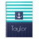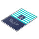 Nautisches Notizblock mit türkisfarbenem und marineblau gestreiftem Muster und anpassbarem Text.