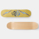 Bereiten Sie sich auf den Skate-Park vor und bringen Sie Ihr Brett mit diesem goldenen Hintergrund und einem silberblauen Drachen mit blauen Blitzschrauben auf der Oberseite und unten auf dem Brett.