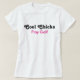 Stoere vrouwen / meisjes spelen Golf. Mit Shirt traf sich zwart en donker rood. Leuk als cadeau of voor jou als je van Golfen houdt.
