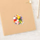 Einzigartiger personalisierter Aufkleber für Dekoration, Kunsthandwerk, Feiern... Foto von süßen köstlichen, glänzenden gelben, roten, grünen, weißen, orangen, rosa und lila Geleebohnen.