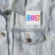 Im Nachhinein würde ich eher den Button mit Magnet bestellen... damit dieser bei jeder Kleidung angebracht werden kann. Sehr gute Bildqualität