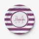 Coole Lila Magenta-Streifen und Monogramm Pappteller