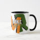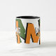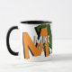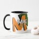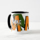Stilvolle Tasse personalisiert mit seinem Namen im coolen Schriftart-Stil, mit großen orange und grün übergroßen Anfangsbuchstaben mit schwarzem Schatten.....................................................................................................................................................................