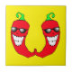 Anthropomorphe rote Chili-Paprikaschoten ~ Keramik-Akzentfliese. Genießen Sie Fliese u. Dank für das Kurz aufhalten bei!