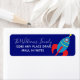 Niedliche Astronauten-Rücksendeadressen-Aufkleber mit einem coolen blauen und roten Raketenschiff. Dieses gepflegte Spaceship-Mailing-Label ist perfekt für die Einladungen eines kleinen Jungen zum Geburtstag.