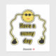 Aufkleber mit cooler gelber Sonne mit Sonnenbrille, langen Händen und Text HABEN EINEN SONNENTAG