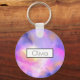 Ein traumhafter personalisierter Schlüsselanhänger mit einer schönen Mischung aus weichen Pastellfarben und hellen Farben. Ein buntes abstraktes Bild mit einem kosmischen Raumbild in rosa, lila und gelben Wasserfarben. Die Farben vermischen sich und mischen sich, um helle ätherische Wolken zu erzeugen, die durch kleine funkelnde Sterne durchzogen werden.