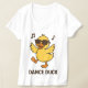 Ein lustiges Cartoon-Design einer gelben Ente mit Sonnenbrille und fröhlichem Tanzen. Ideal für T - Shirt, Tasse und Geschenke, die glückliche Stimmung und Spaß verbreiten.