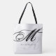 Eine stilvolle weiße Tasche mit Ihrem Namen und Initialen, die im Stil eines Schriftartes mit Monogramm ist