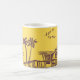 Vintager tropischer Strand zeichnend auf gelbem Hintergrund.