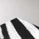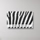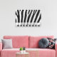 Ein cooles schwarz-weißes Zebramuster. Wechselnde Streifen aus schwarz und weiß. Von einem nach oben nahen Makro-Foto einer Zebras-Seite. Ein trendiges abstraktes Design. Die Worte zebra safari sind unten auf einem transparenten weißen Rand gedruckt.