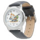Kinder Edelstahluhr mit schwarzem Lederarmband