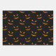 Cooler beängstigender Jack O'Lantern Gesicht Halloween Muster Wrapping Paper Sheets. Böse aussehen orange und gelb brennende Kürbisgesicht auf schwarzen Halloween-Party Supplies Geschenkwrap.