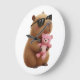 Cooler Capybara mit rosa Teddybär Große Wanduhr