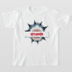 Great White Shark Attack Editable T - Shirt. Der Hai hat ein Stück Holz in seinen riesigen Zähnen, auf das man seinen eigenen Namen oder seine eigene Formulierung schreiben kann. Der perfekte T - Shirt für Groß und Klein.