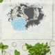 Cooler gotischer Schädel und blaue Rose Küchenhandtuch. Ein cooles Vektordesign mit einem Schädel mit einigen geblüht Wirbel und Halftonelementen in Schwarz und einer Rose in Blau. Es gibt eine blasse Rose im Hintergrund und etwas Text in einem Vintagen Schriftart. Es ist anpassbar und Sie können Text und Schriftart ändern.