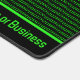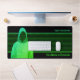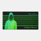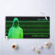 Ein cyber-thematisches Design in Grün auf Schwarz, mit einem coolen grungy Effekt auf den gefundenen Hacker und einem Hintergrund von binären Einsen und Nullen. Ihr Name, Ihre Firmendetails oder ein anderer Text erscheinen in einem farbig abgestimmten Grün. In der rechten oberen Ecke der hellen Aqua-farbenen Schrift gibt es Platz für eine Geschäftstagline, Jobtitel, Sicherheitswitz oder Hacking-Slogan.