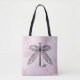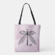 CottageCore Monogramm Tote Tasche mit einem schönen Libellen mit offenen Flügeln über rosa Aquarellfarben Hintergrund. Großartiges Entomologiedesign für Wissenschaftler, die sich für Insekten, Natur und Goblinkern interessieren.