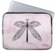 CottageCore Monogramm Laptop Ärmel mit einem schönen Libellen mit offenen Flügeln über rosa Aquarellfarbe. Großartiges personalisiertes Entomologiedesign für Insekten-, Natur- und Goblinkernwissenschaftler.