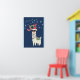 Cooler Llama in Weihnachtsmannmütze mit Schneefloc Poster
