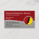 Moderne Electrician Service Visitenkarten online Vorlage in einem einzigartigen Design mit elektrischem Emblem und einfaches Layout können Sie online anpassen. Entwickelt für einen zugelassenen Elektro-, Elektro- oder beruflichen Bauunternehmer, der in Wohn- oder kommerziellen Arbeiten tätig ist. Bedruckt auf hochwertigem mattbeschichtetem UV-beschichtetem Visitenkartenmaterial.