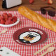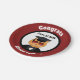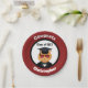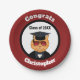 Der niedliche, lustige, wunderliche Entwurf in der Mitte dieser Papierplatte kennzeichnet eine coole orange Tabbykatze, die eine Abschlusskappe und tiefroten Sonnenbrillen trägt. Über der Katze sind die kundengerechten Wörter, "Klasse von 20XX" in der populären Typografie. Der gesamte Entwurf wird durch eine kreisförmige schwarze Grenze auf einem weißen Hintergrund umgeben. Die Katze zu umgeben ist ein tiefroter Hintergrund mit der kundengerechten Mitteilung, "Glückwunsch" über der Katze und ein kundengerechter Name unten.