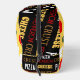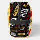 Coole Pizza Pepperoni Muster Käse Kruste Text auf schwarzen Toilettenbeutel. Gepflegte Pizza-Liebestasche. Juicy Vektor Pizza mit knuspriger Kruste, Käse, Salami, Champignon Pilze, Oliven und ein Sprinkle Oregano gemacht.