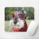 Mini genießt das MiniaturSchanauzer die Sonne mit seinen Hündchen goggies u. Polo-Shirt an.
