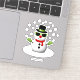Einzigartige personalisierte Imitate Glitzern Aufkleber für Dekoration, Kunsthandwerk, Feiern... Winterbild eines coolen Schneemanns mit Schneeflocken, grüner Sonnenbrille und Handschuhen, rotem Schal und schwarzem Top-Hut.
