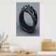 Ein extravaganter cooler, schwarzer Ring mit einem einzigartigen Design. Das ist eine künstlerische KI.