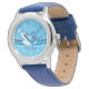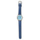 Kinderuhr aus Edelstahl mit blauem Lederarmband