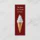 Einzigartiges, vertikal formatiertes, kompaktes Visitenkarten-Modell im Eis-Shop in einem eleganten, zweiseitigen Design, das eine auffällige Eistüte auf der Vorderseite lasse, und die Details im Eis-Shop auf der gedreht Seite.