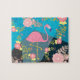 Schöner rosa Flamingo mit rosa Blumenhintergrund.