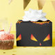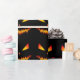 Halloween Wrapping Paper Muster. Böse aussehen orange und gelb brennende Kürbisgesicht mit benutzerdefiniertem schwarzen Hintergrund.