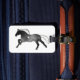 Wir kennzeichnen ein Hand gezeichnetes Pferd mit Schwarzweiss-Grafik des Nebelflecks und der Milchstraße. Dieser Entwurf ist minimal und schick.
