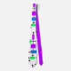 Diese Krawatte hat ein modernes Design von einem Gitter aus horizontalen und vertikalen schwarzen Linien mit Rechtecken in verschiedenen lebhaften Farbtönen grün, blau und lila.