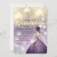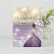 Modernes Feuerwerk goldene Funkelmädchen in einem Ballkleid Einladung Design.