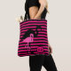 Lebhafte rosa und schwarze Streifen mit cooler Flamingo-Silhouette-Design auf mit Monogramm Tasche.