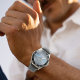 Herrenuhr aus Edelstahl mit schwarzem Lederarmband