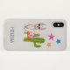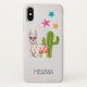 Personalisierte Telefonzelle illustriert mit einem niedlichen Lamm mit einer herzförmigen Sonnenbrille. Einige Sterne, ein Pilz und ein grüner Kakteen ergänzen die Abbildung. Whimsical und niedlich.