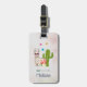 Ein personalisierter Gepäckanhänger illustriert mit einem niedlichen Lamm mit einer herzförmigen Sonnenbrille. Einige Sterne, ein Boho-Pfeil, ein roter Pilz und ein grüner Kakteen runden das Bild ab. Whimsical und niedlich.